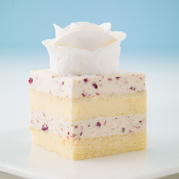 一座小小的花园 一场优美的缄默 色彩的冲撞带来幻美的视觉享受 自制的玫瑰酱调配而成的玫瑰慕斯蛋糕 口感丰富 异香诱人 忠贞的爱情充溢了玫瑰的内心,因而更加美丽 主口味:玫瑰慕斯 主要原料:糖渍玫瑰,奶油芝士,乳脂奶油,朗姆酒,白巧克力软糖 甜度:三星(满五星) 最佳食用温度:5-7摄氏度